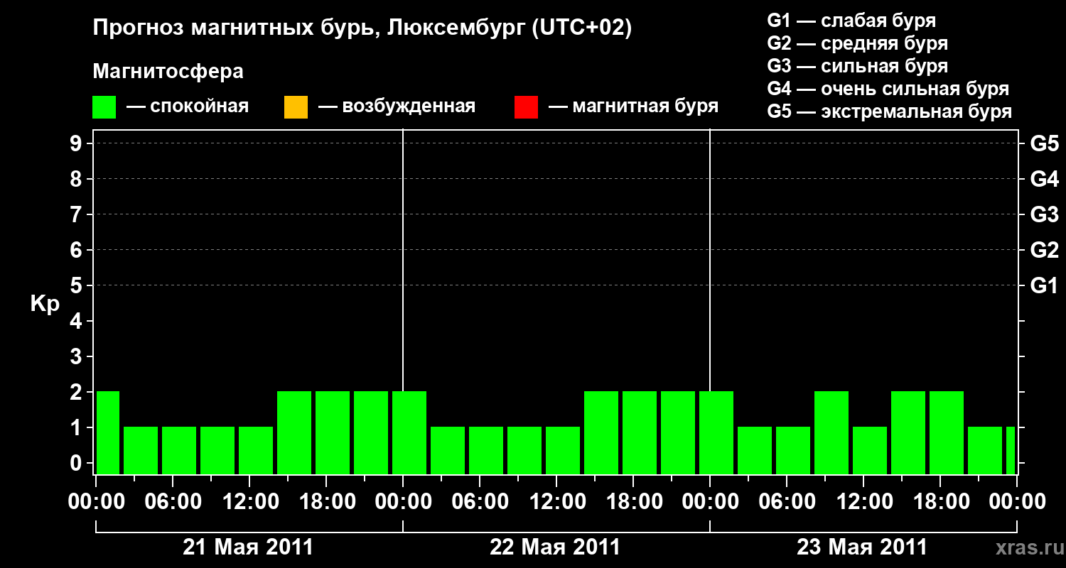 Прогноз магнитных бурь в Люксембурге — 21 мая 2011 года