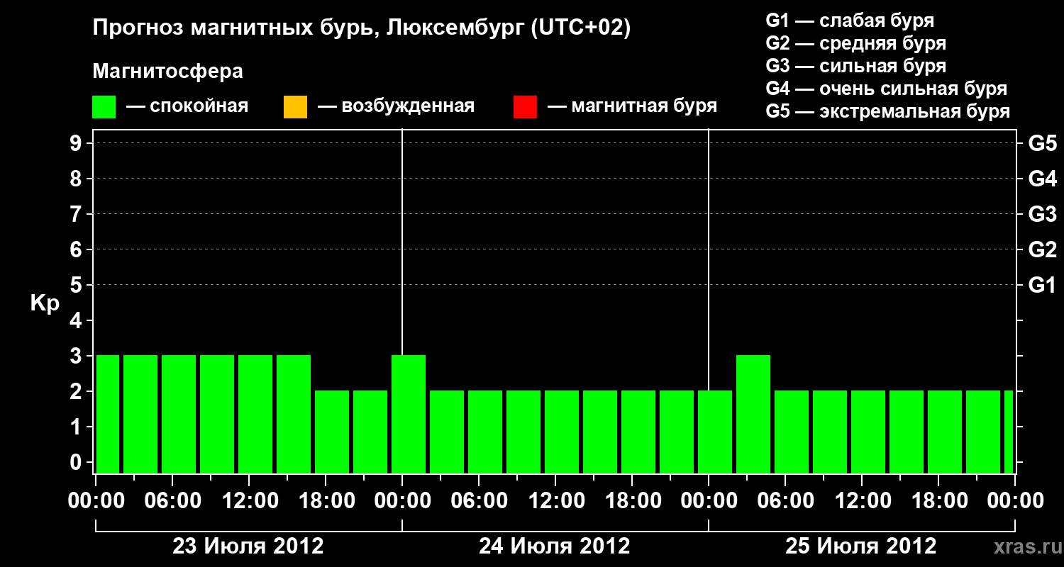 Прогноз магнитных бурь в Люксембурге — 23 июля 2012 года