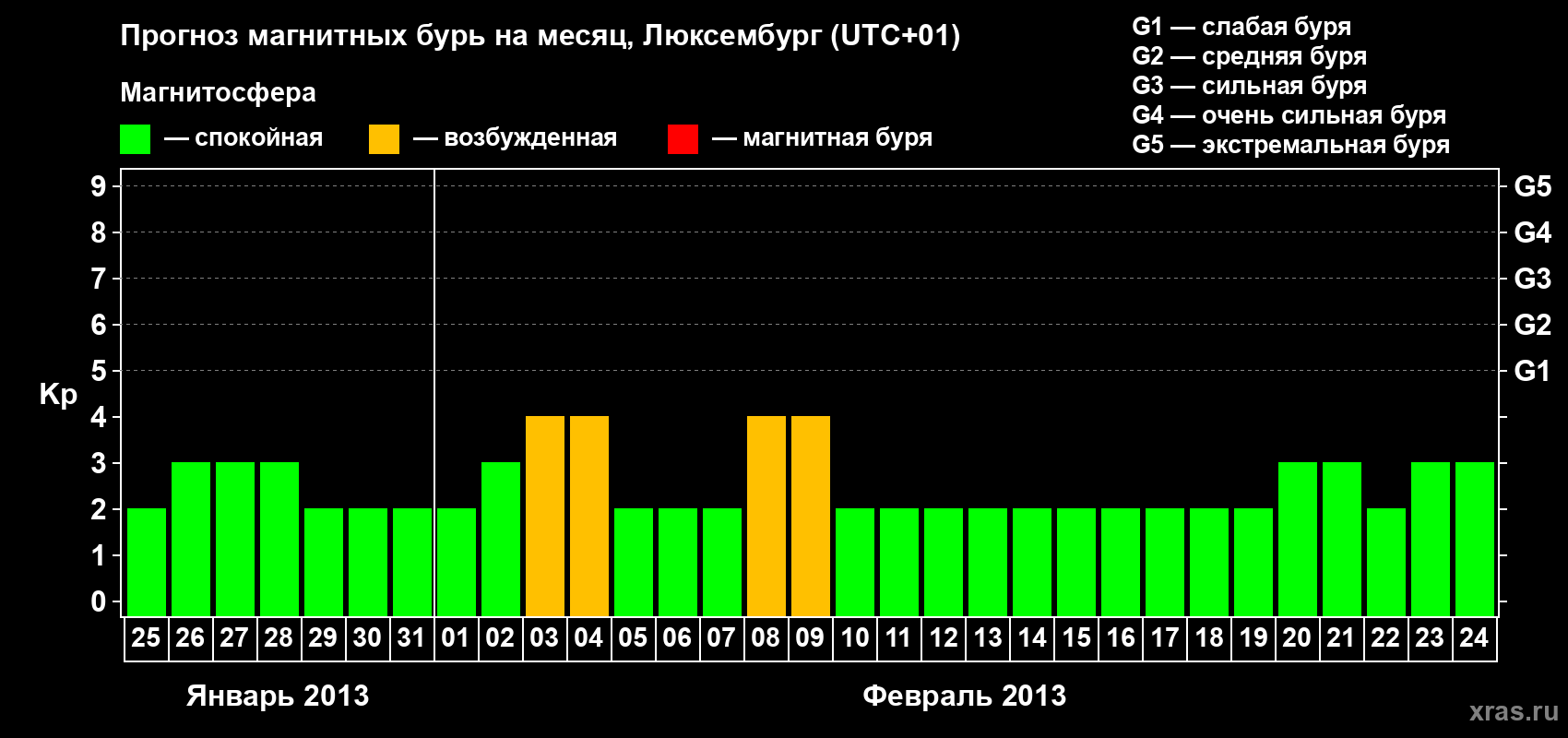 Прогноз магнитных бурь в Люксембурге — 25 января 2013 года