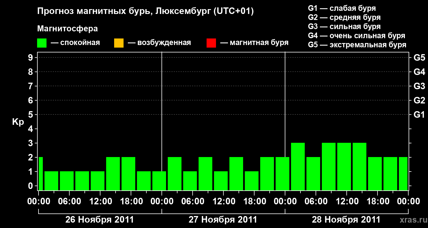 Прогноз магнитных бурь в Люксембурге — 26 ноября 2011 года