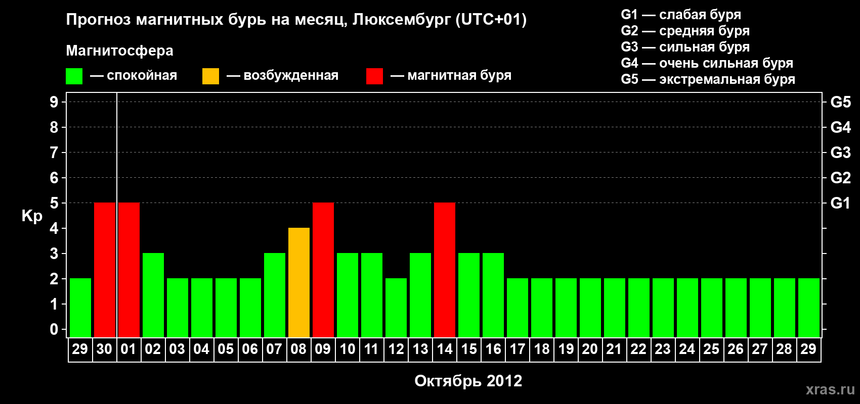 Прогноз магнитных бурь в Люксембурге — 29 сентября 2012 года