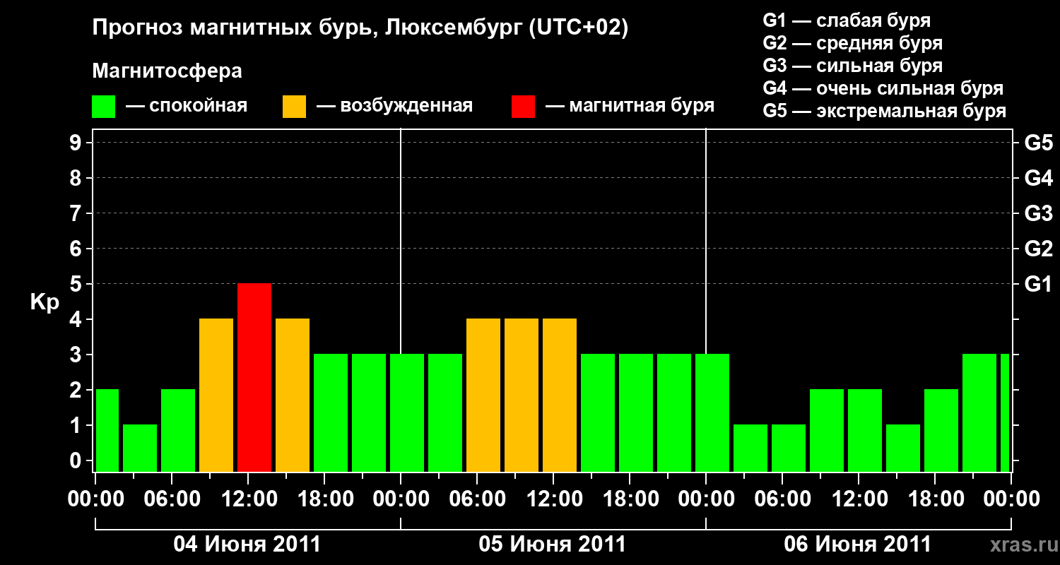 Прогноз магнитных бурь в Люксембурге — 4 июня 2011 года