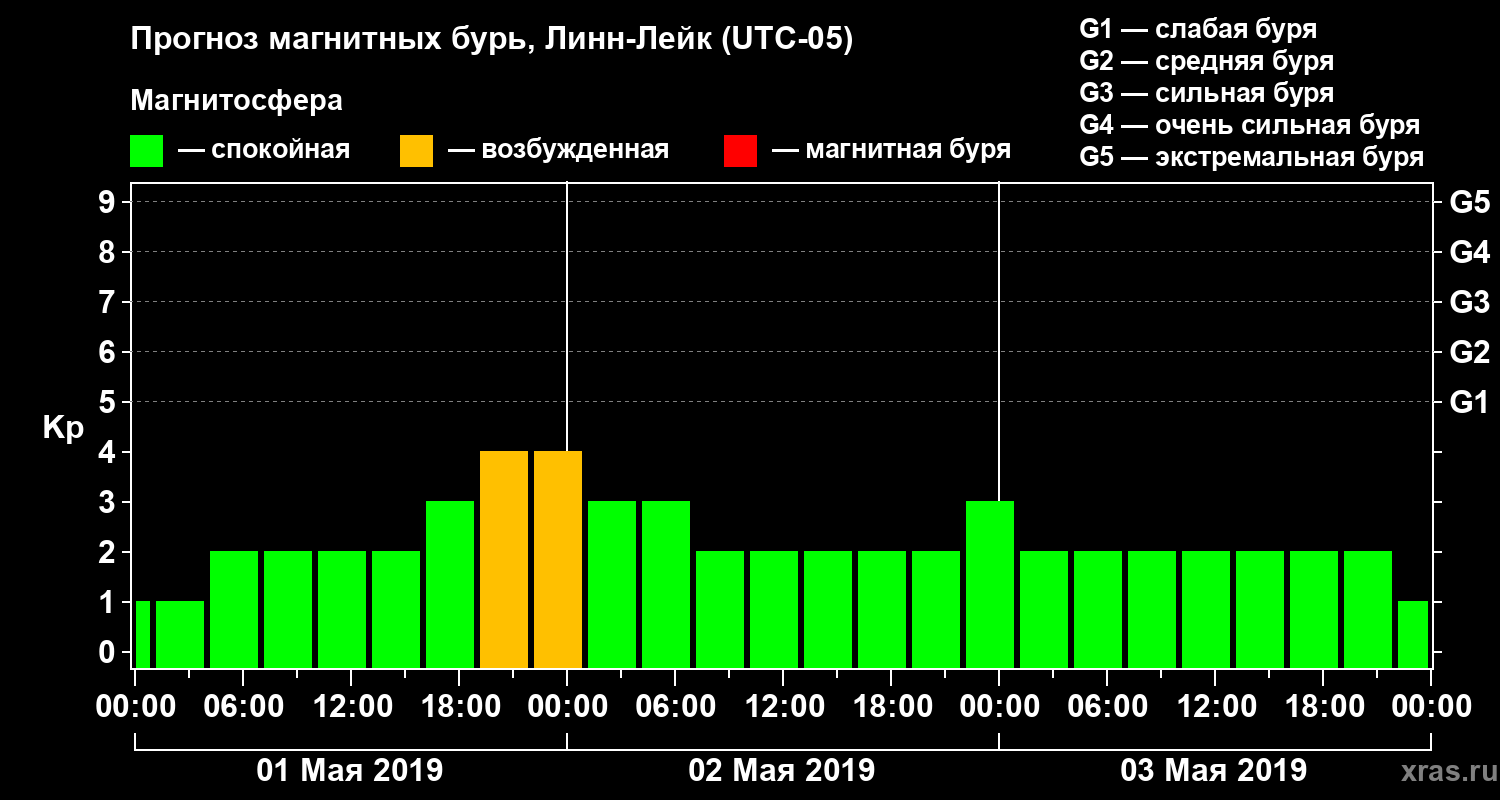 Прогноз магнитных бурь в Линн-Лейке — 1 мая 2019 года