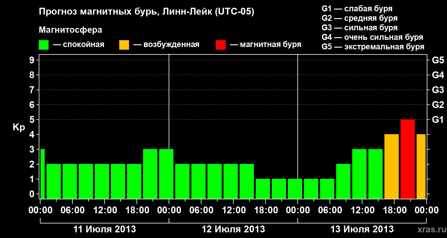 Прогноз магнитных бурь в Линн-Лейке — 11 июля 2013 года