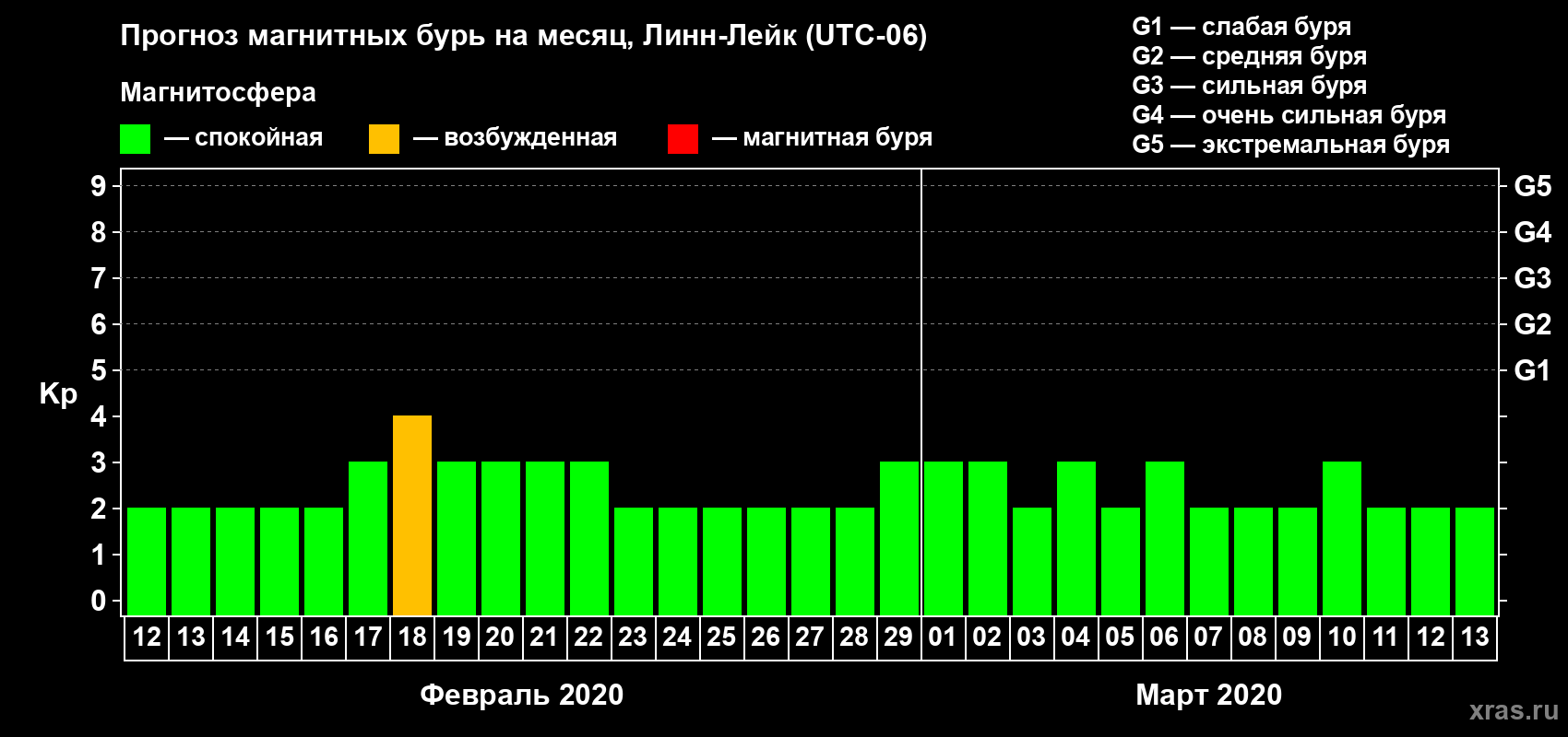 Прогноз магнитных бурь в Линн-Лейке — 12 февраля 2020 года