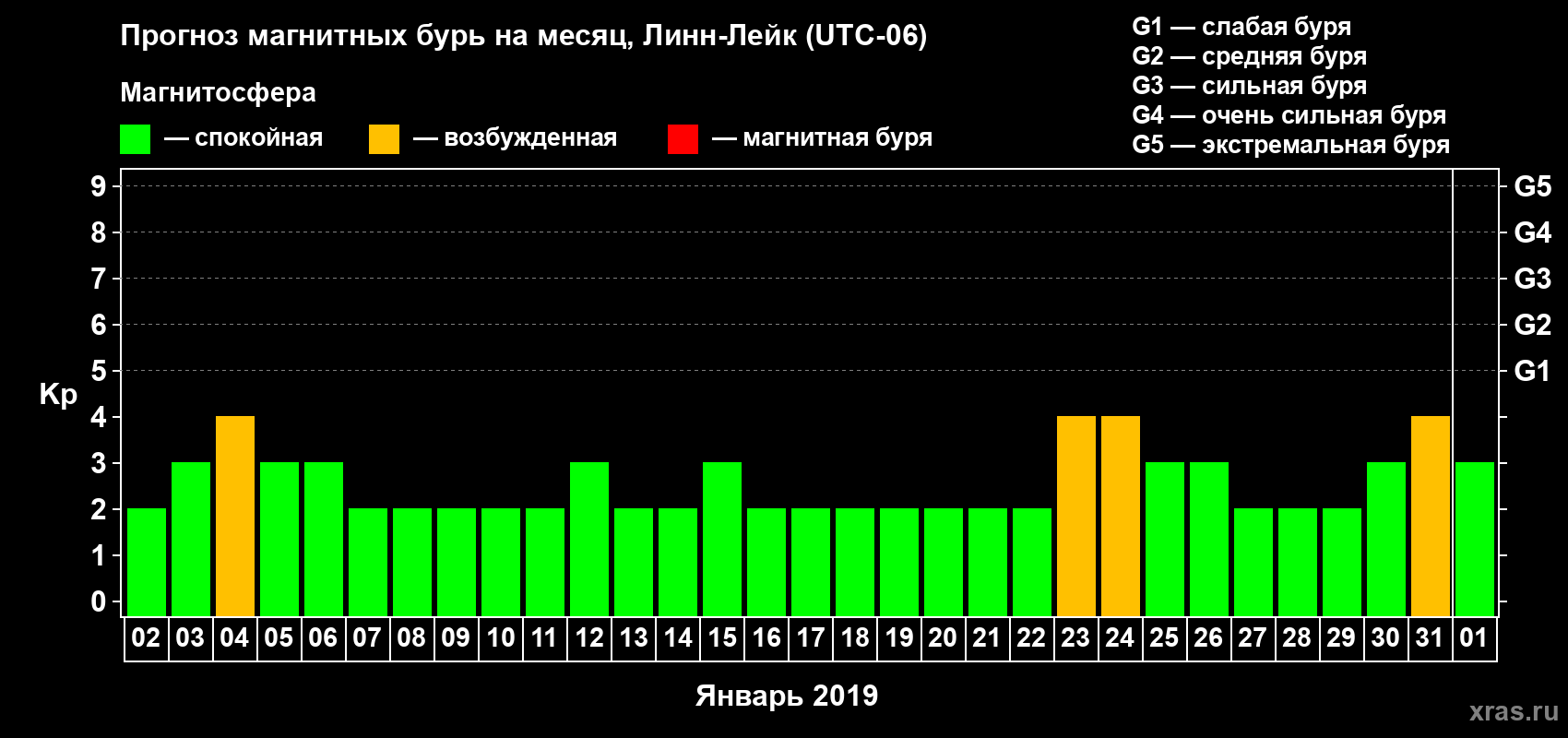 Прогноз магнитных бурь в Линн-Лейке — 2 января 2019 года