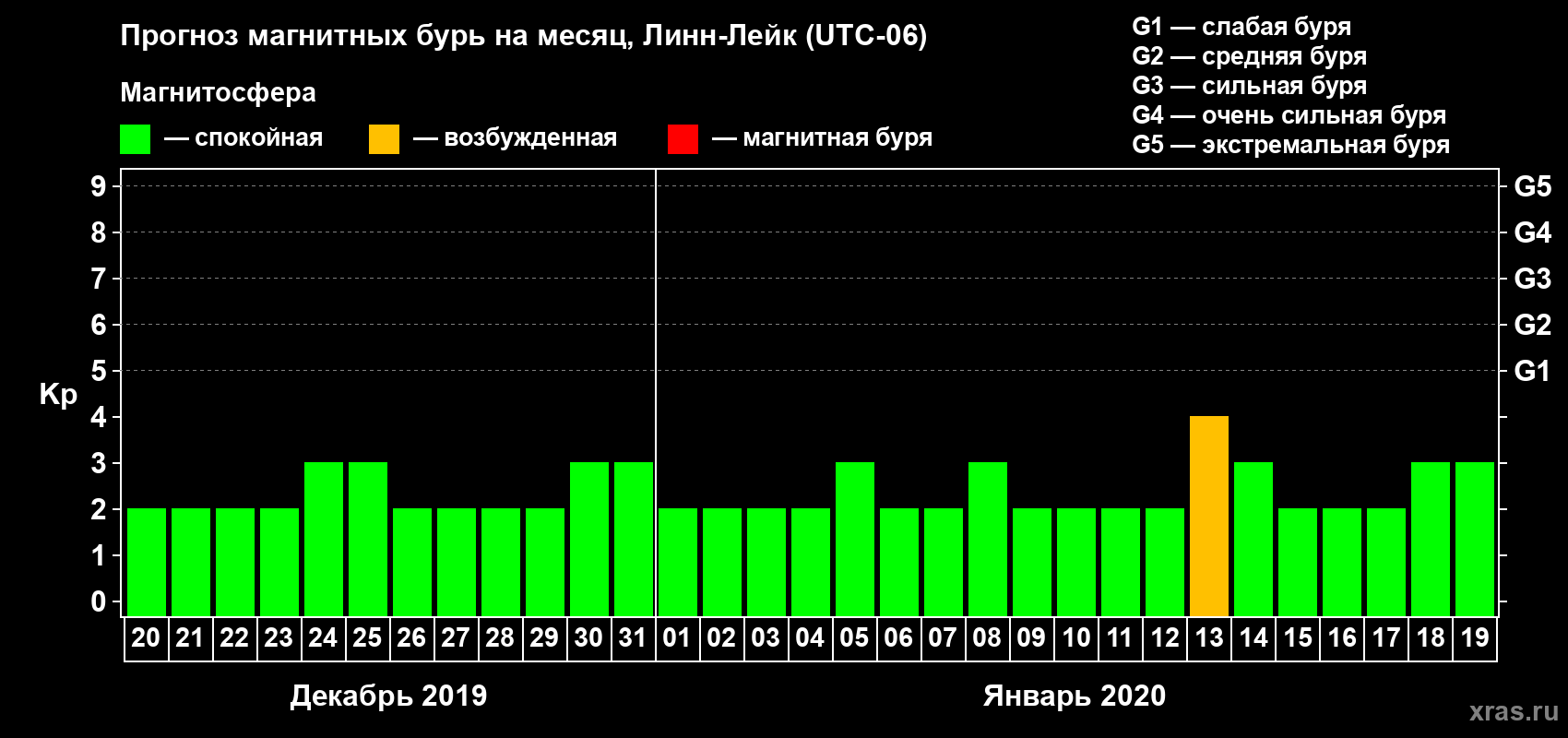 Прогноз магнитных бурь в Линн-Лейке — 20 декабря 2019 года