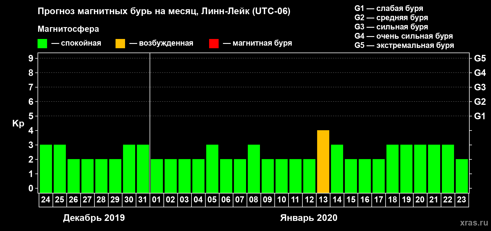 Прогноз магнитных бурь в Линн-Лейке — 24 декабря 2019 года