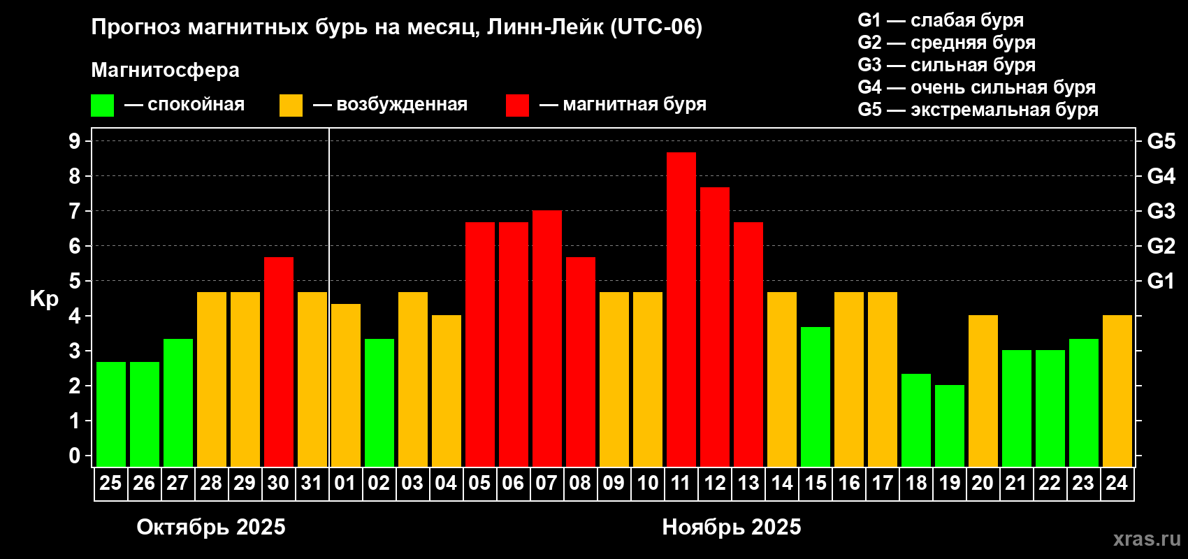 Прогноз магнитных бурь в Линн-Лейке — 25 октября 2025 года