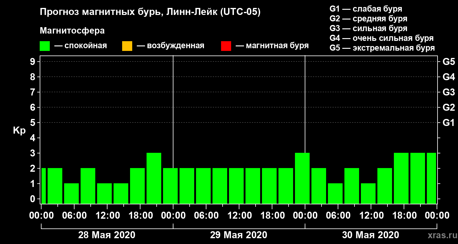 Прогноз магнитных бурь в Линн-Лейке — 28 мая 2020 года