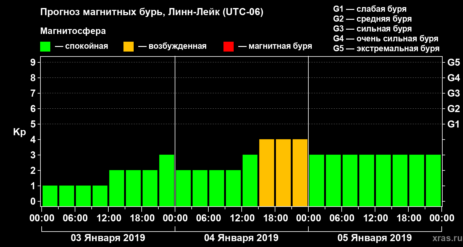 Прогноз магнитных бурь в Линн-Лейке — 3 января 2019 года