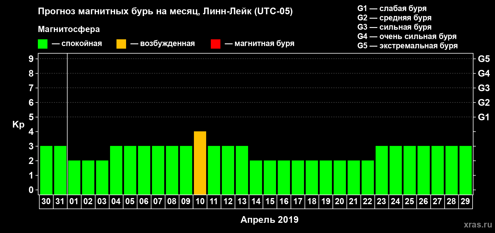 Прогноз магнитных бурь в Линн-Лейке — 30 марта 2019 года