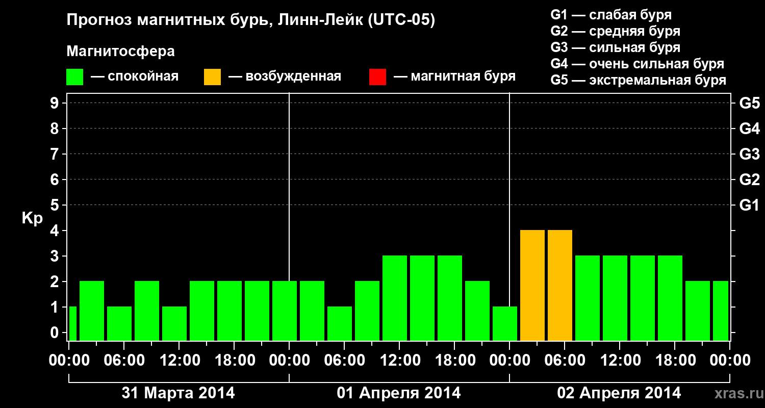 Прогноз магнитных бурь в Линн-Лейке — 31 марта 2014 года