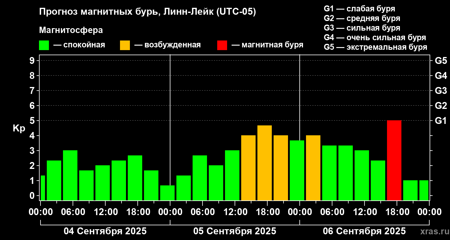 Прогноз магнитных бурь в Линн-Лейке — 4 сентября 2025 года