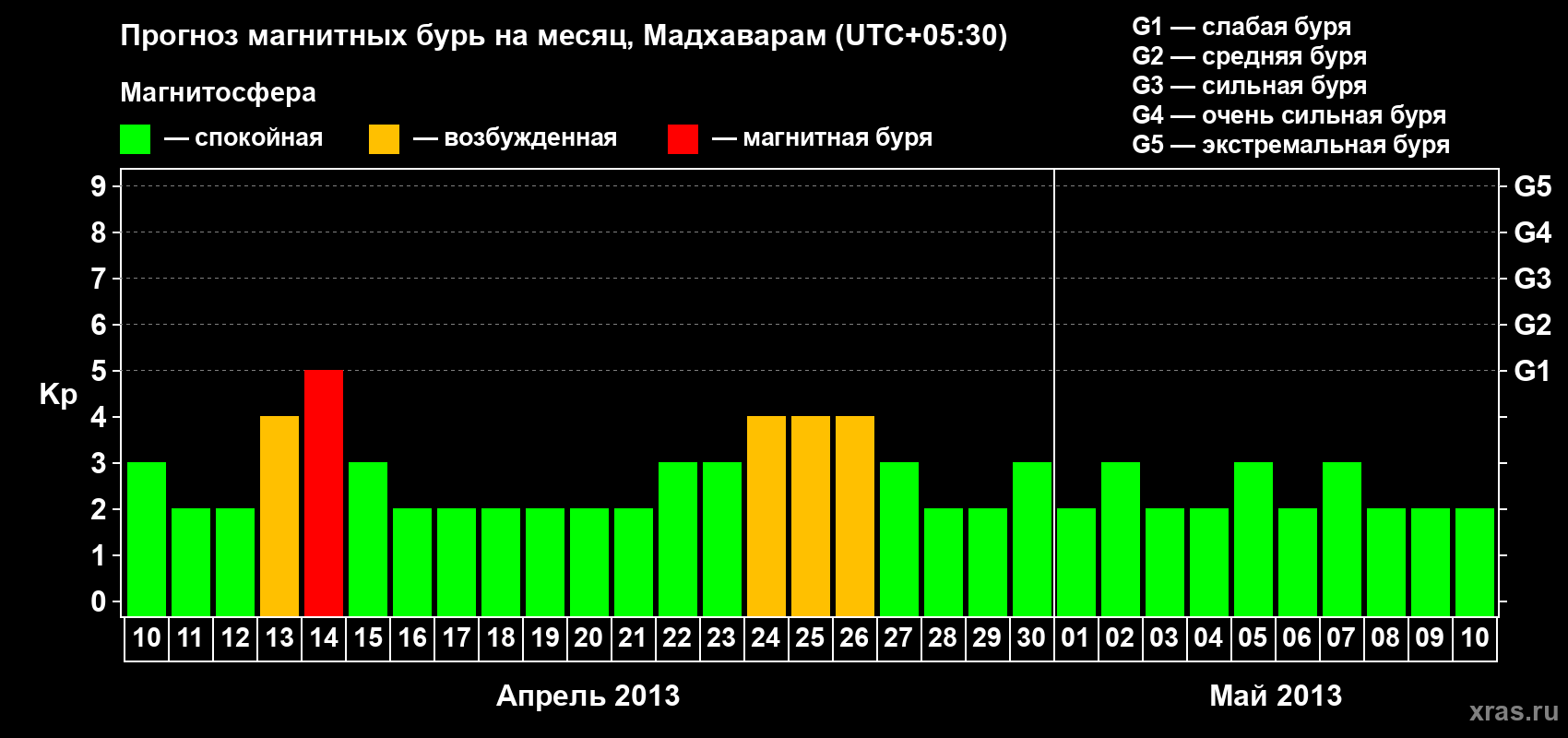 Прогноз магнитных бурь в Мадхавараме — 10 апреля 2013 года