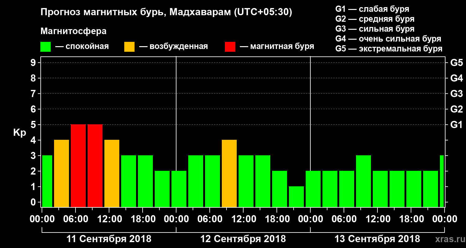 Прогноз магнитных бурь в Мадхавараме — 11 сентября 2018 года