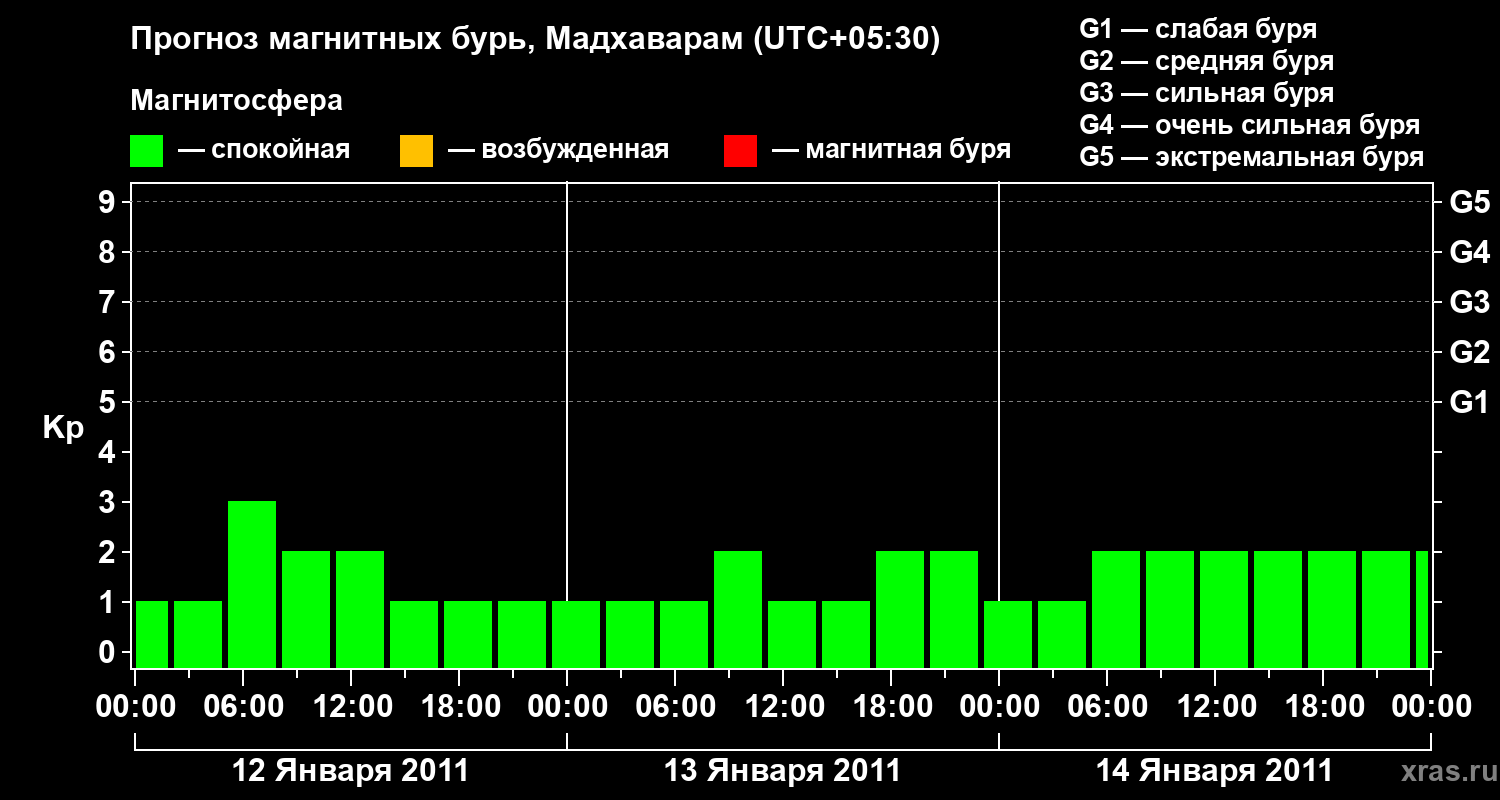 Прогноз магнитных бурь в Мадхавараме — 12 января 2011 года