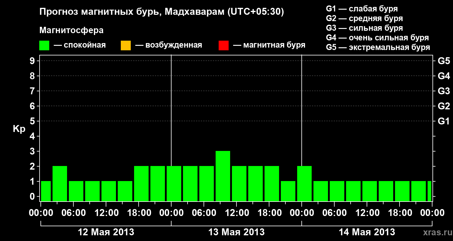 Прогноз магнитных бурь в Мадхавараме — 12 мая 2013 года