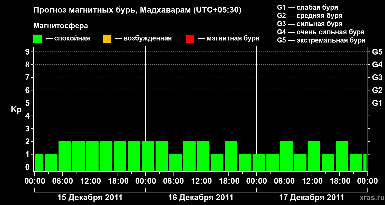 Прогноз магнитных бурь в Мадхавараме — 15 декабря 2011 года
