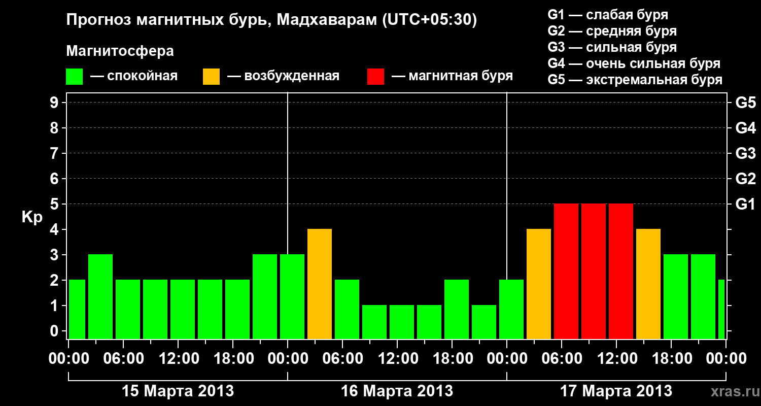 Прогноз магнитных бурь в Мадхавараме — 15 марта 2013 года