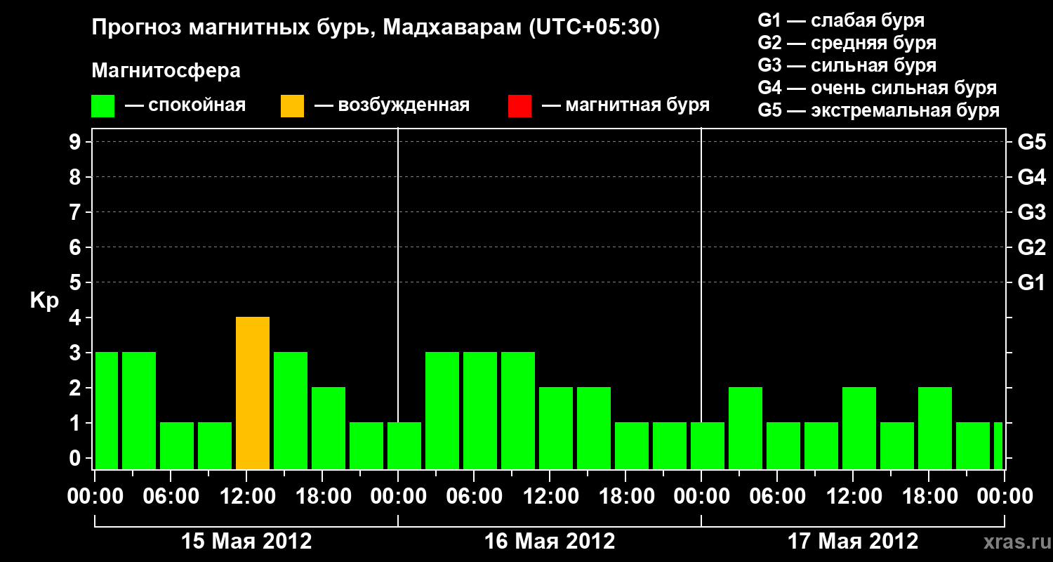 Прогноз магнитных бурь в Мадхавараме — 15 мая 2012 года