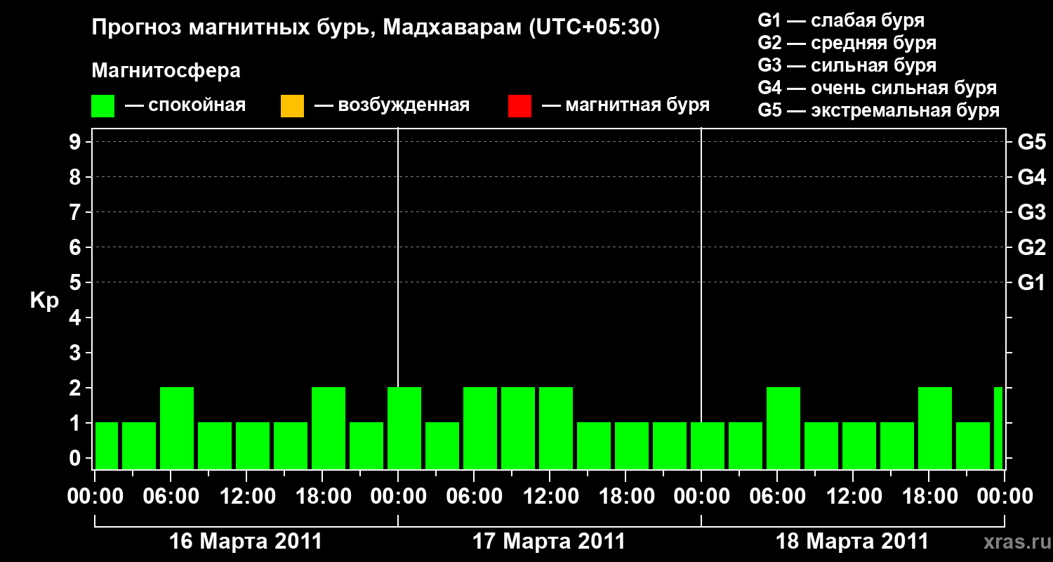 Прогноз магнитных бурь в Мадхавараме — 16 марта 2011 года