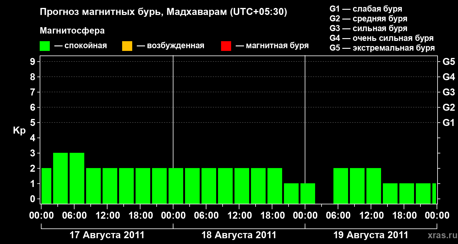 Прогноз магнитных бурь в Мадхавараме — 17 августа 2011 года