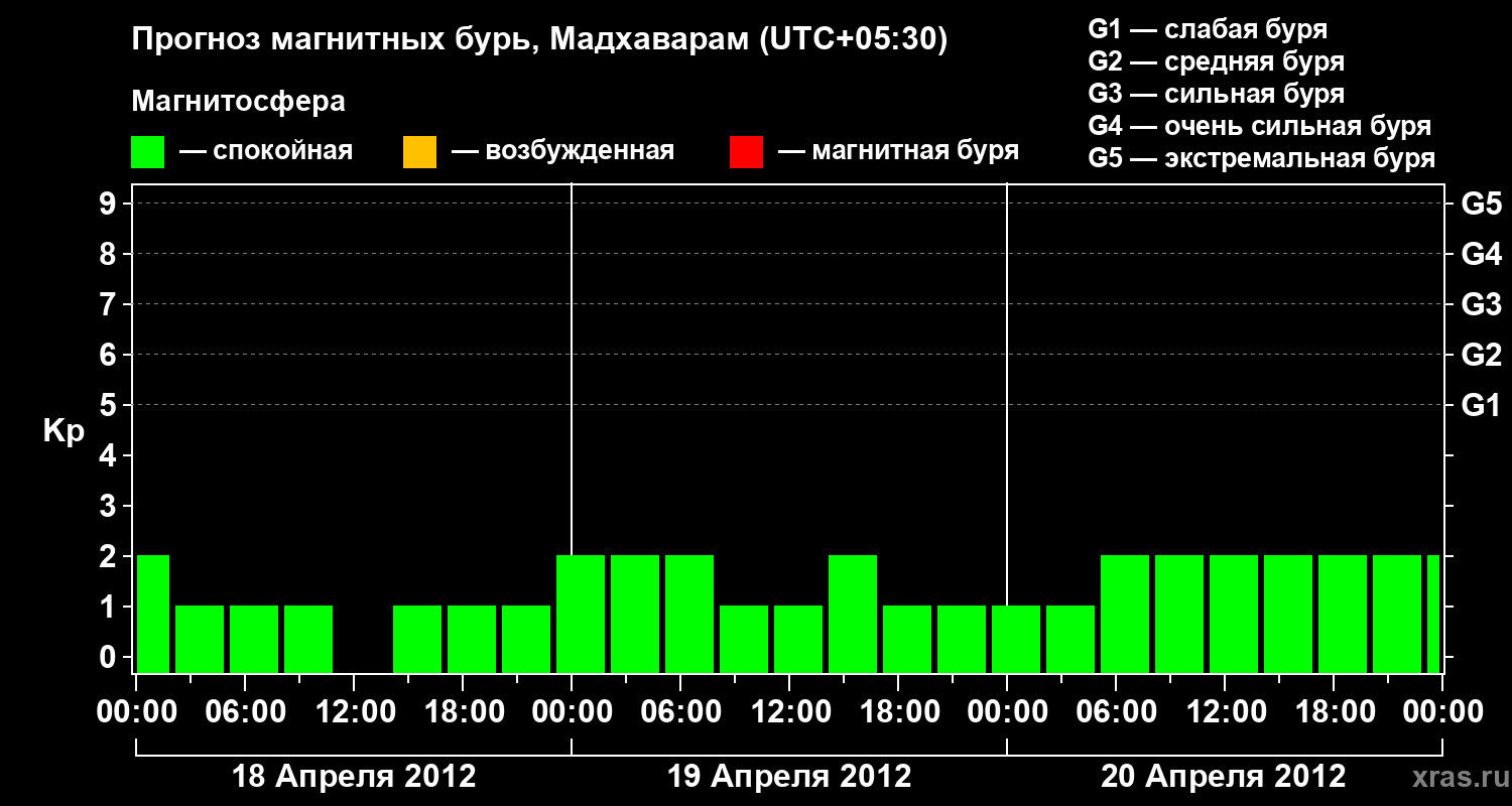 Прогноз магнитных бурь в Мадхавараме — 18 апреля 2012 года