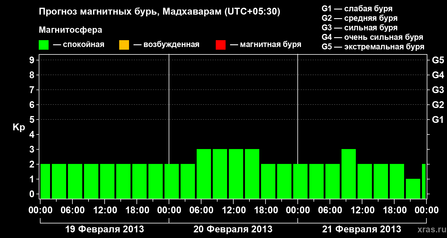 Прогноз магнитных бурь в Мадхавараме — 19 февраля 2013 года
