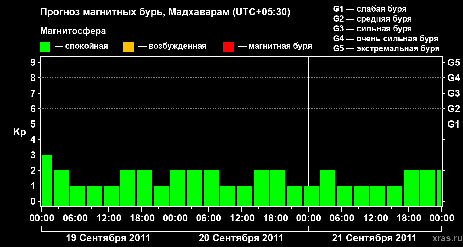 Прогноз магнитных бурь в Мадхавараме — 19 сентября 2011 года
