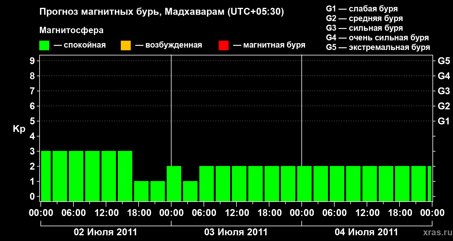 Прогноз магнитных бурь в Мадхавараме — 2 июля 2011 года