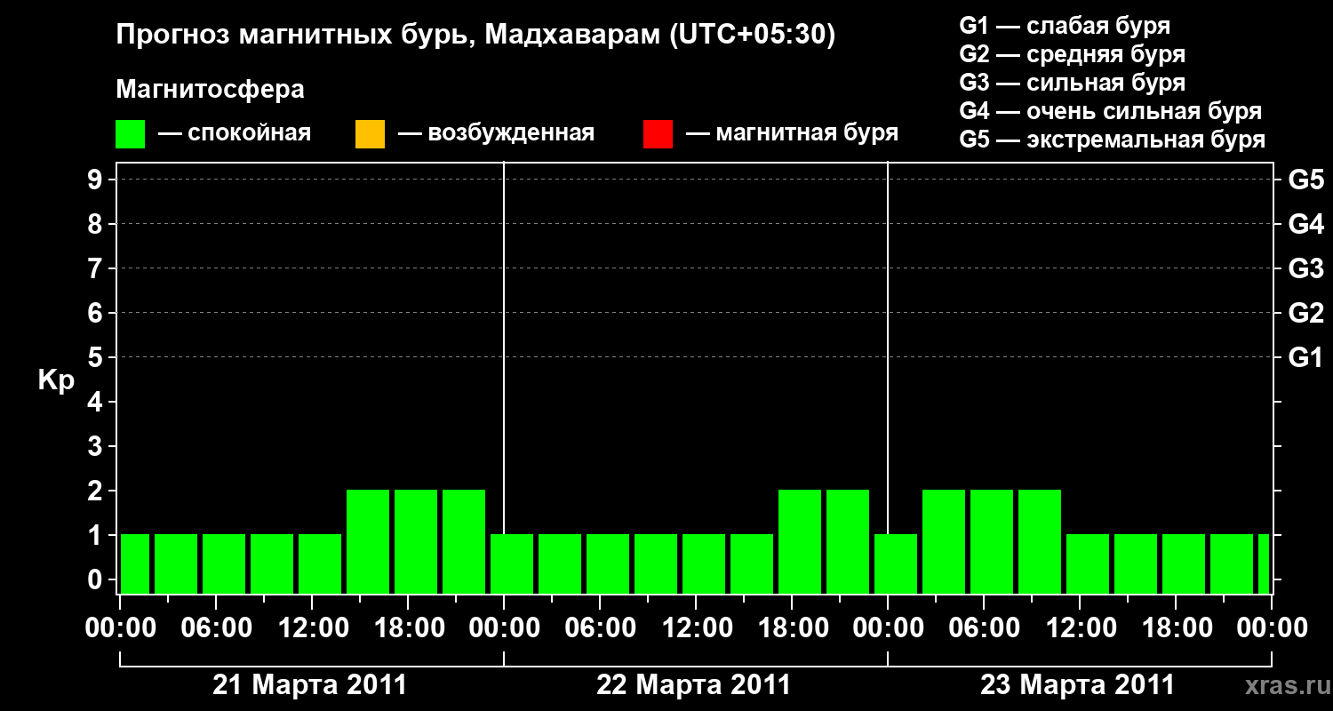 Прогноз магнитных бурь в Мадхавараме — 21 марта 2011 года