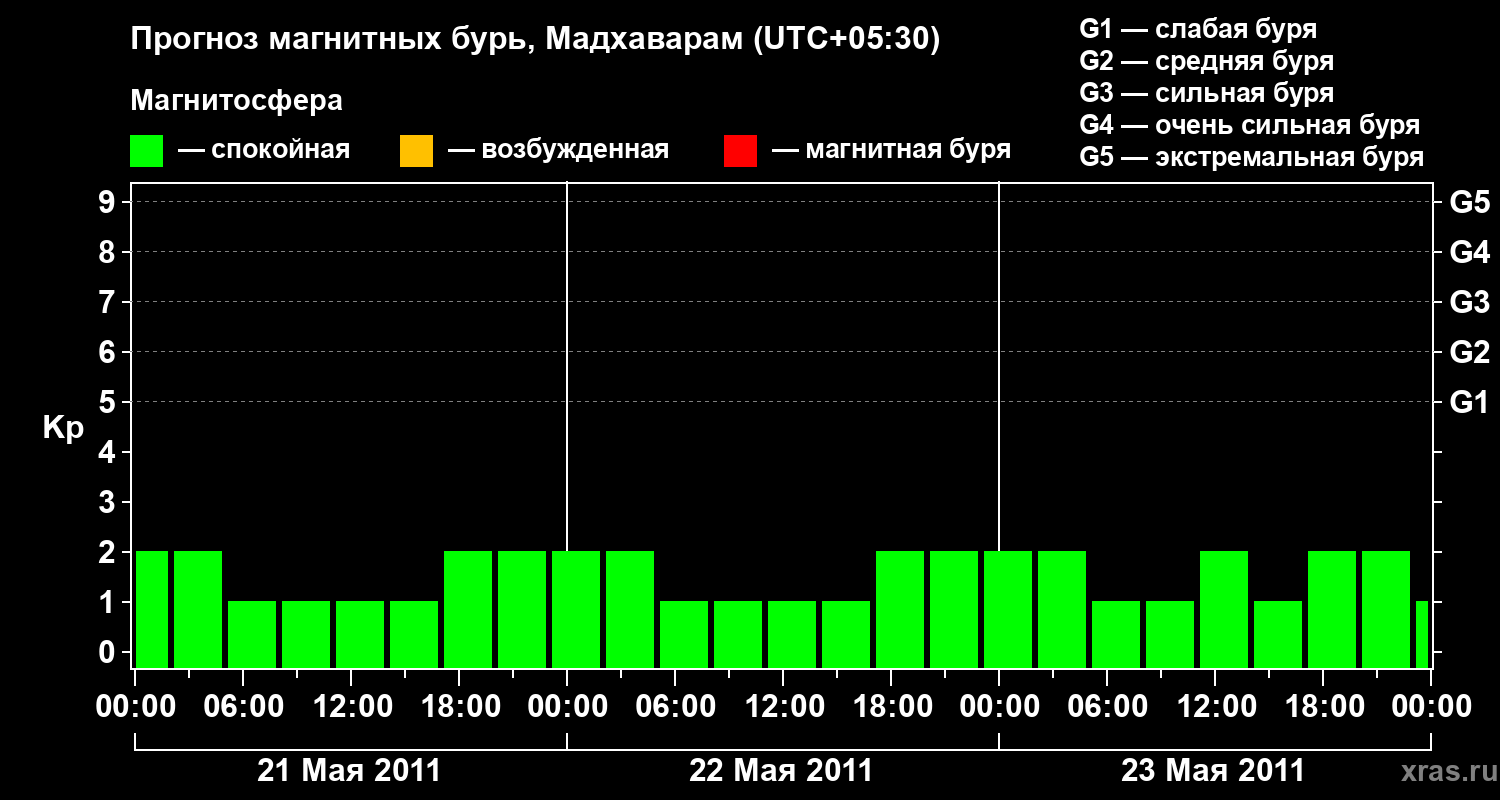 Прогноз магнитных бурь в Мадхавараме — 21 мая 2011 года