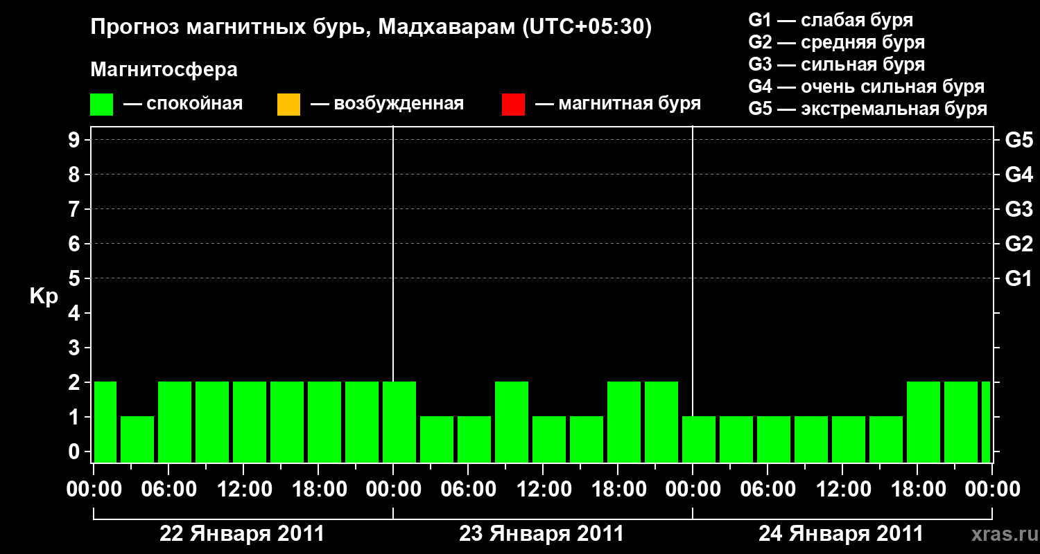 Прогноз магнитных бурь в Мадхавараме — 22 января 2011 года