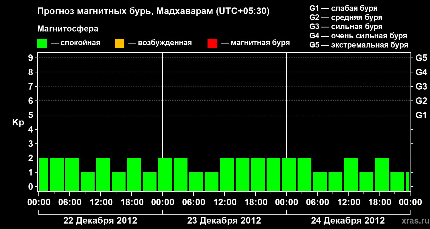 Прогноз магнитных бурь в Мадхавараме — 22 декабря 2012 года