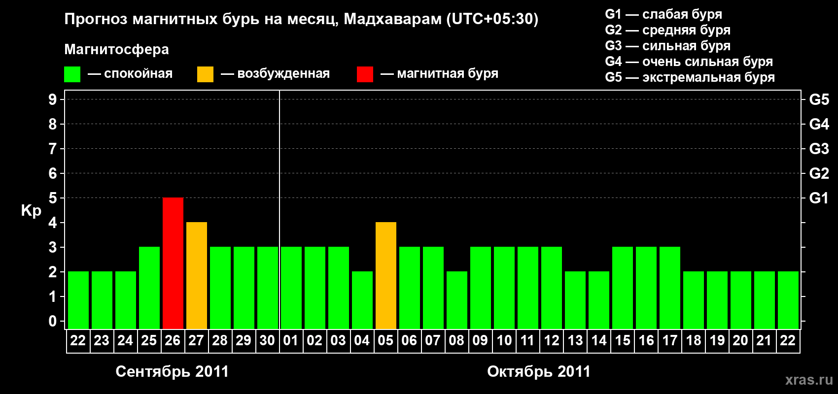 Прогноз магнитных бурь в Мадхавараме — 22 сентября 2011 года