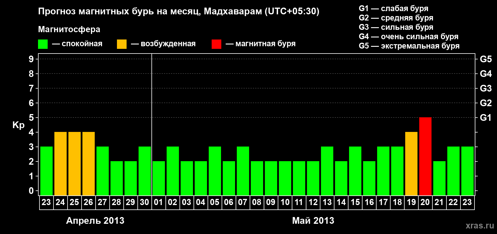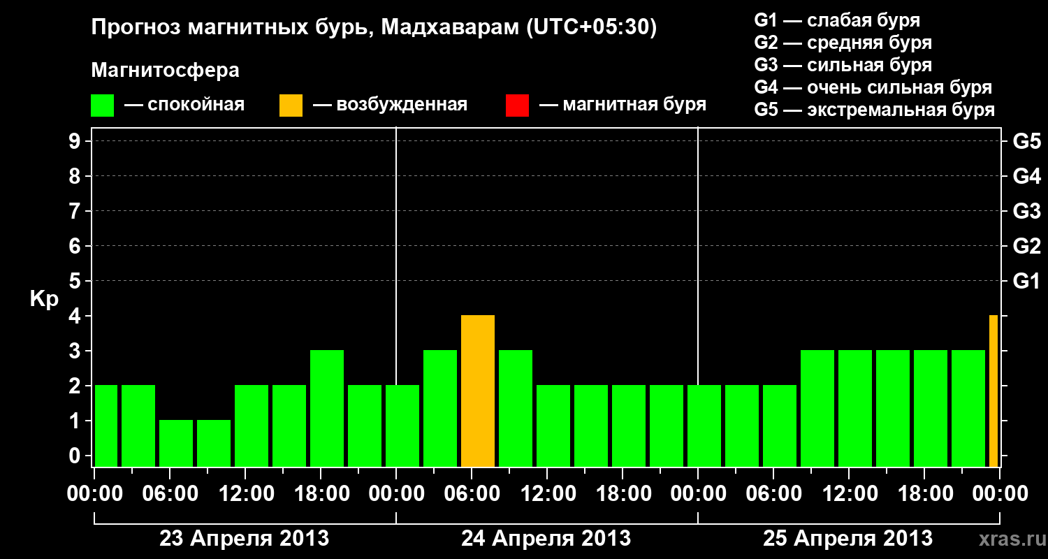 Прогноз магнитных бурь в Мадхавараме — 23 апреля 2013 года