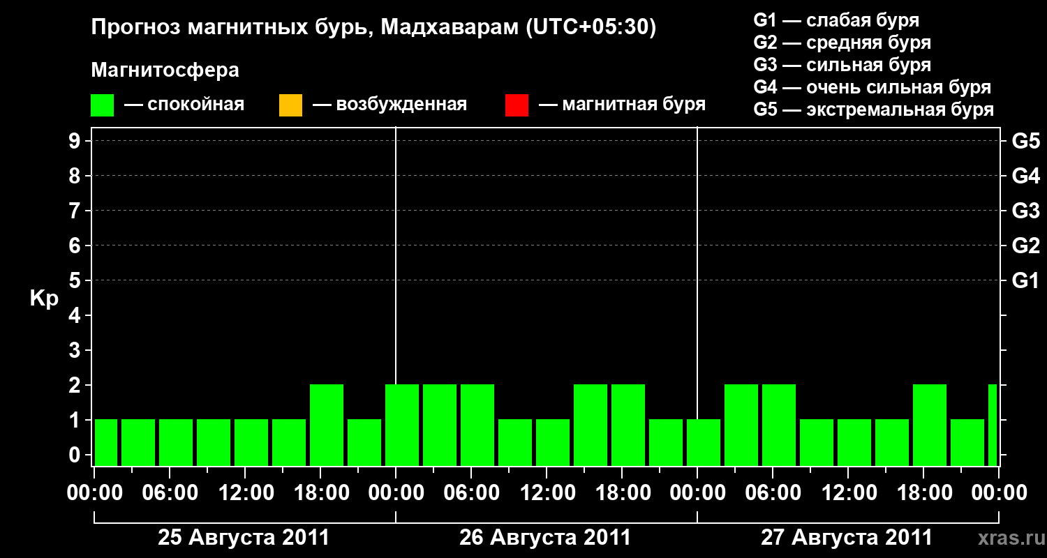 Прогноз магнитных бурь в Мадхавараме — 25 августа 2011 года