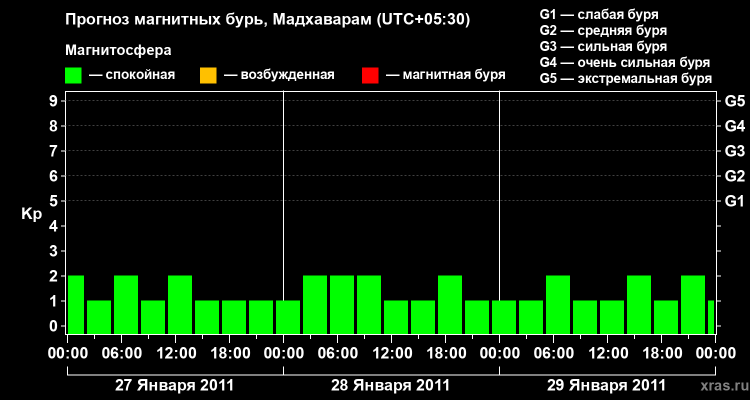 Прогноз магнитных бурь в Мадхавараме — 27 января 2011 года