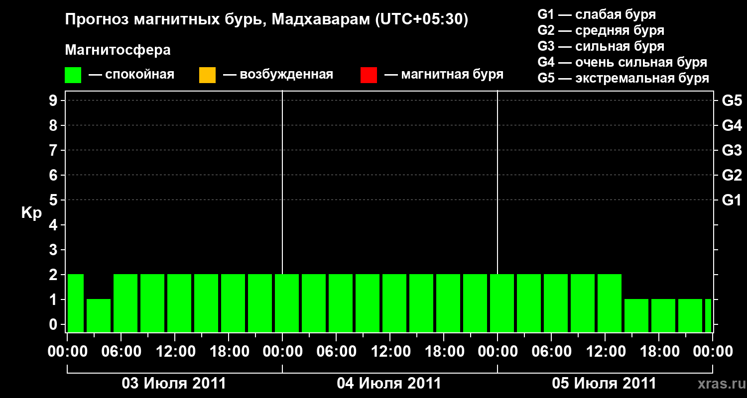 Прогноз магнитных бурь в Мадхавараме — 3 июля 2011 года