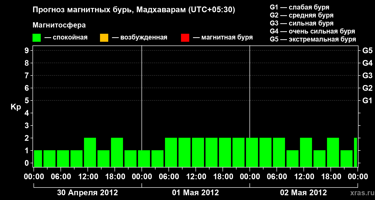 Прогноз магнитных бурь в Мадхавараме — 30 апреля 2012 года