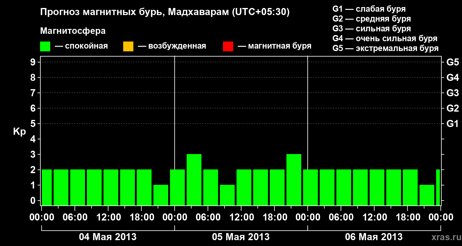 Прогноз магнитных бурь в Мадхавараме — 4 мая 2013 года