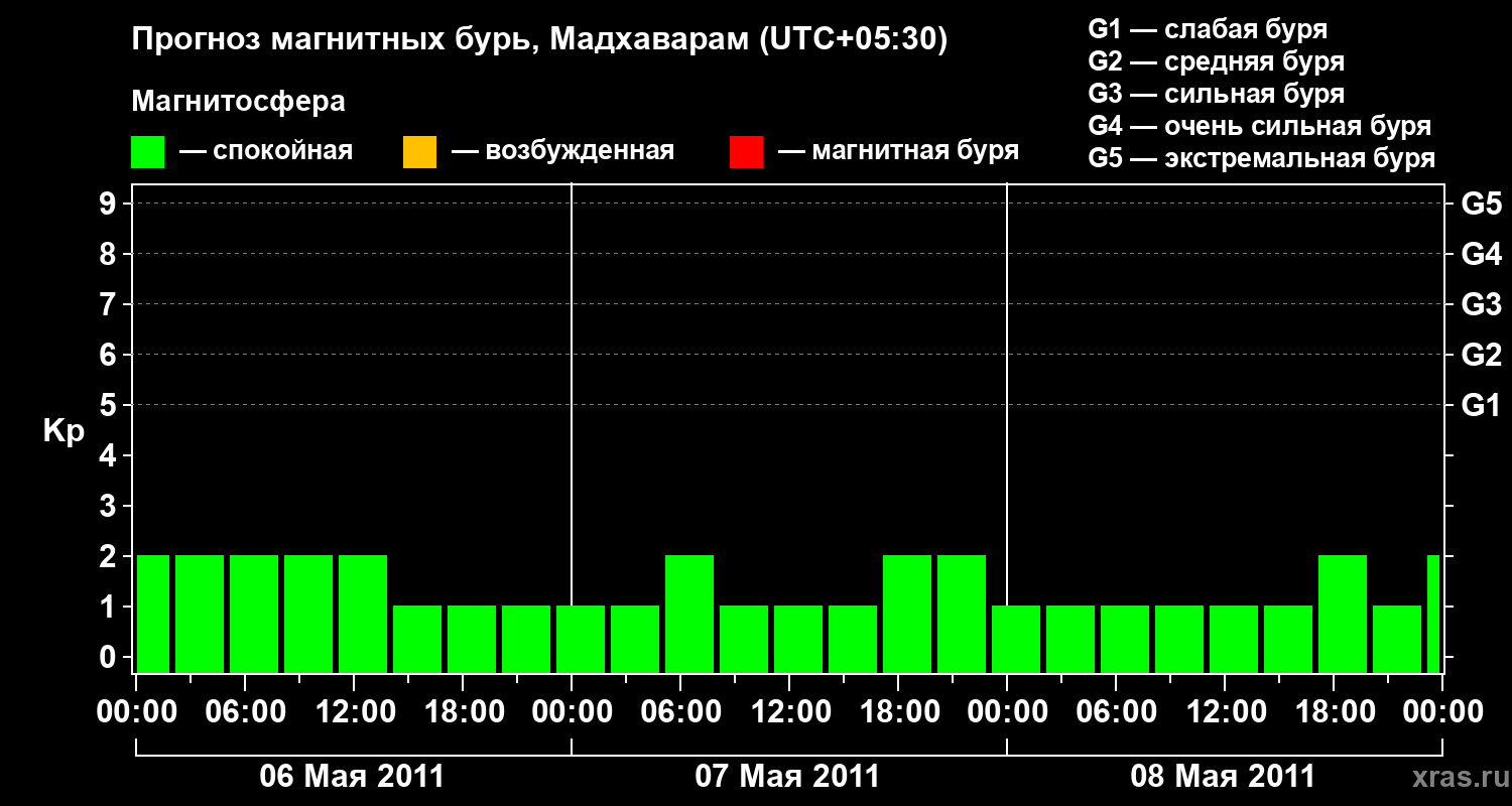 Прогноз магнитных бурь в Мадхавараме — 6 мая 2011 года