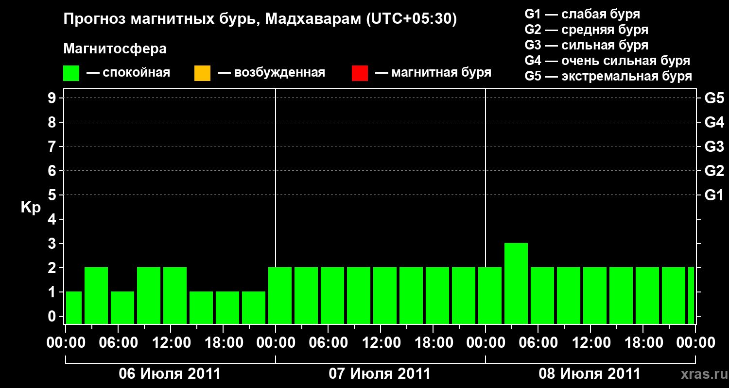 Прогноз магнитных бурь в Мадхавараме — 6 июля 2011 года