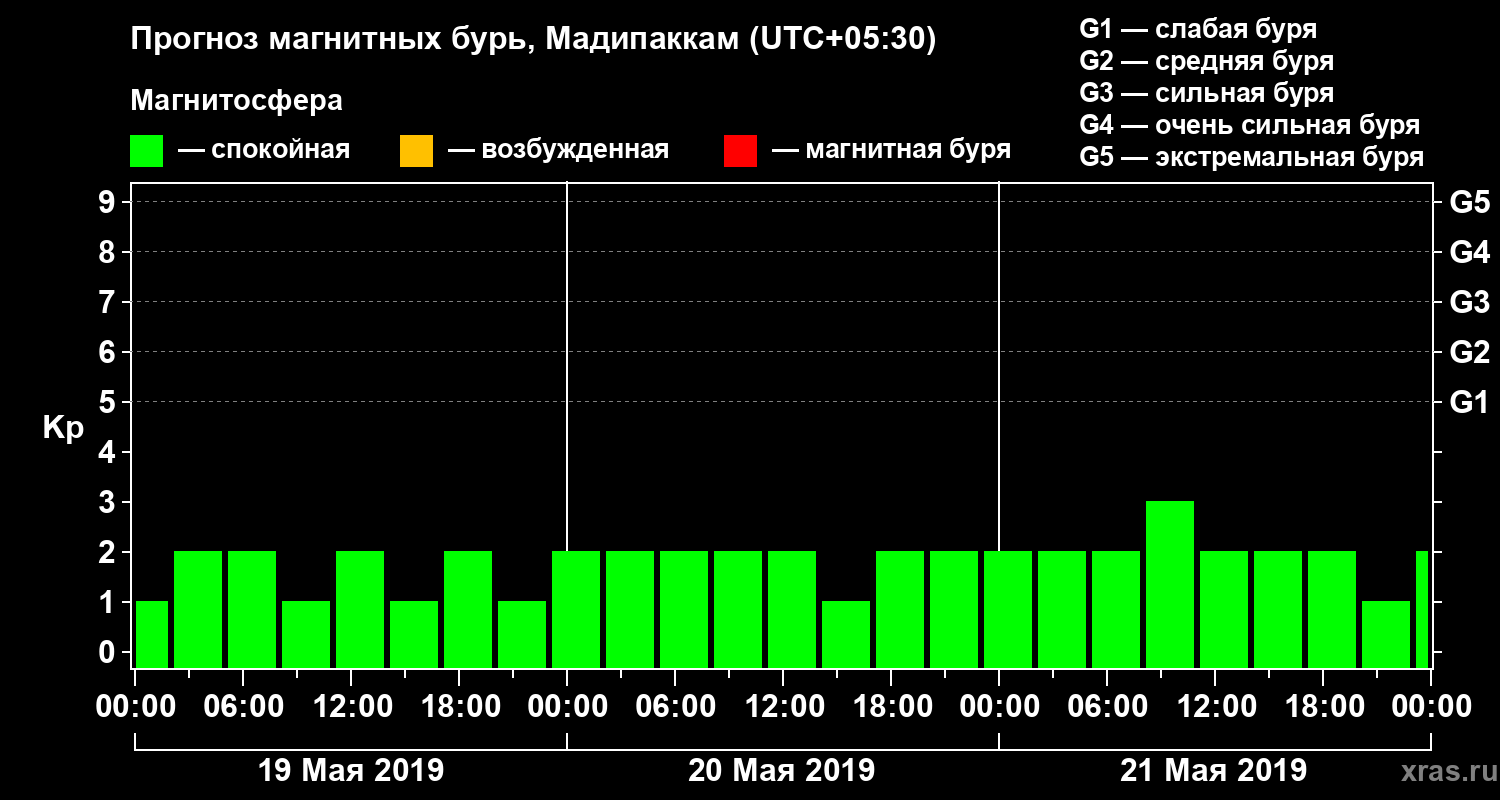 Прогноз магнитных бурь в Мадипаккаме — 19 мая 2019 года