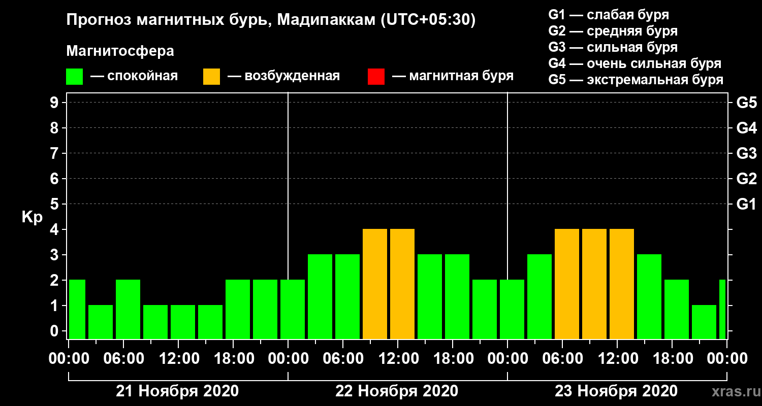 Прогноз магнитных бурь в Мадипаккаме — 21 ноября 2020 года