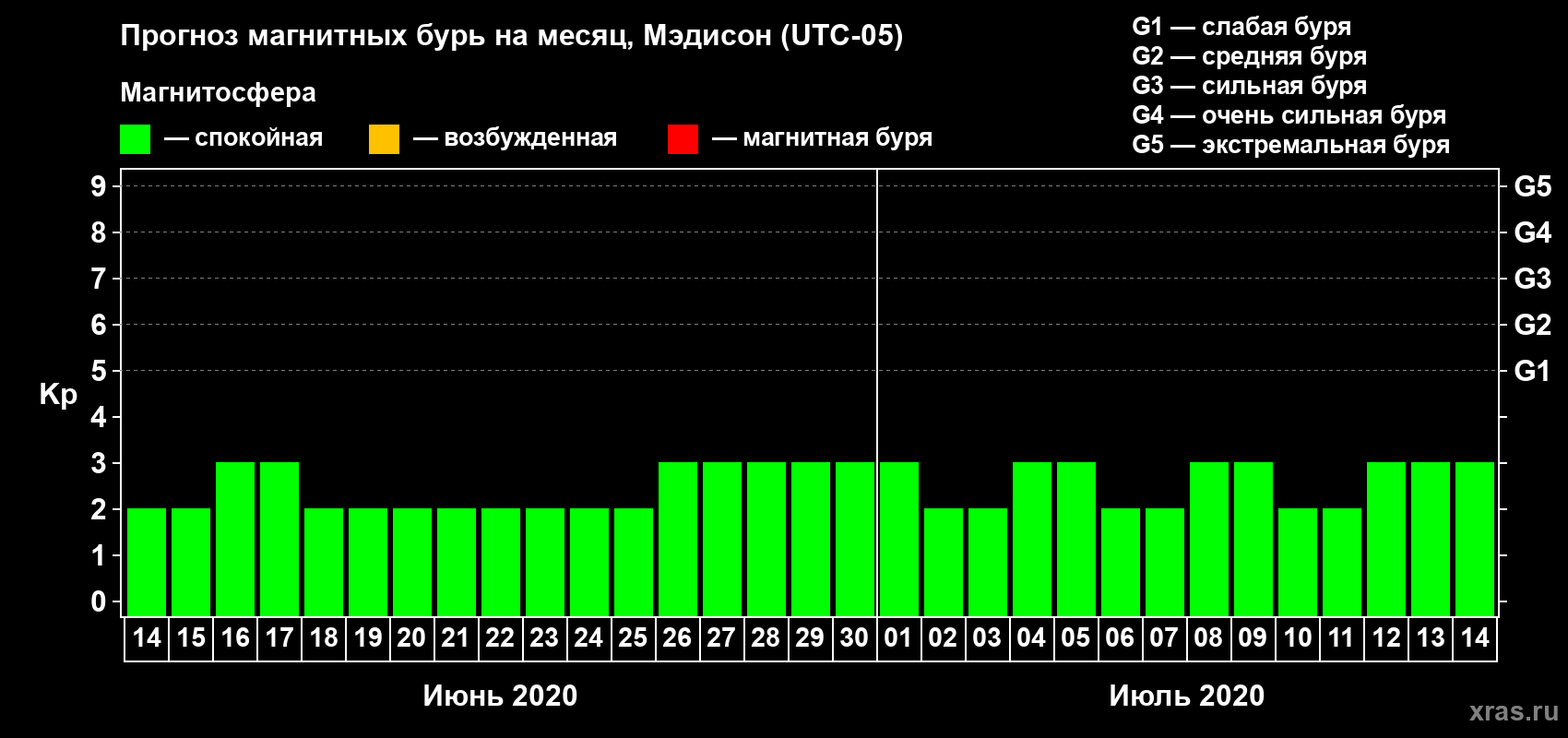 Прогноз магнитных бурь в Мэдисоне — 14 июня 2020 года