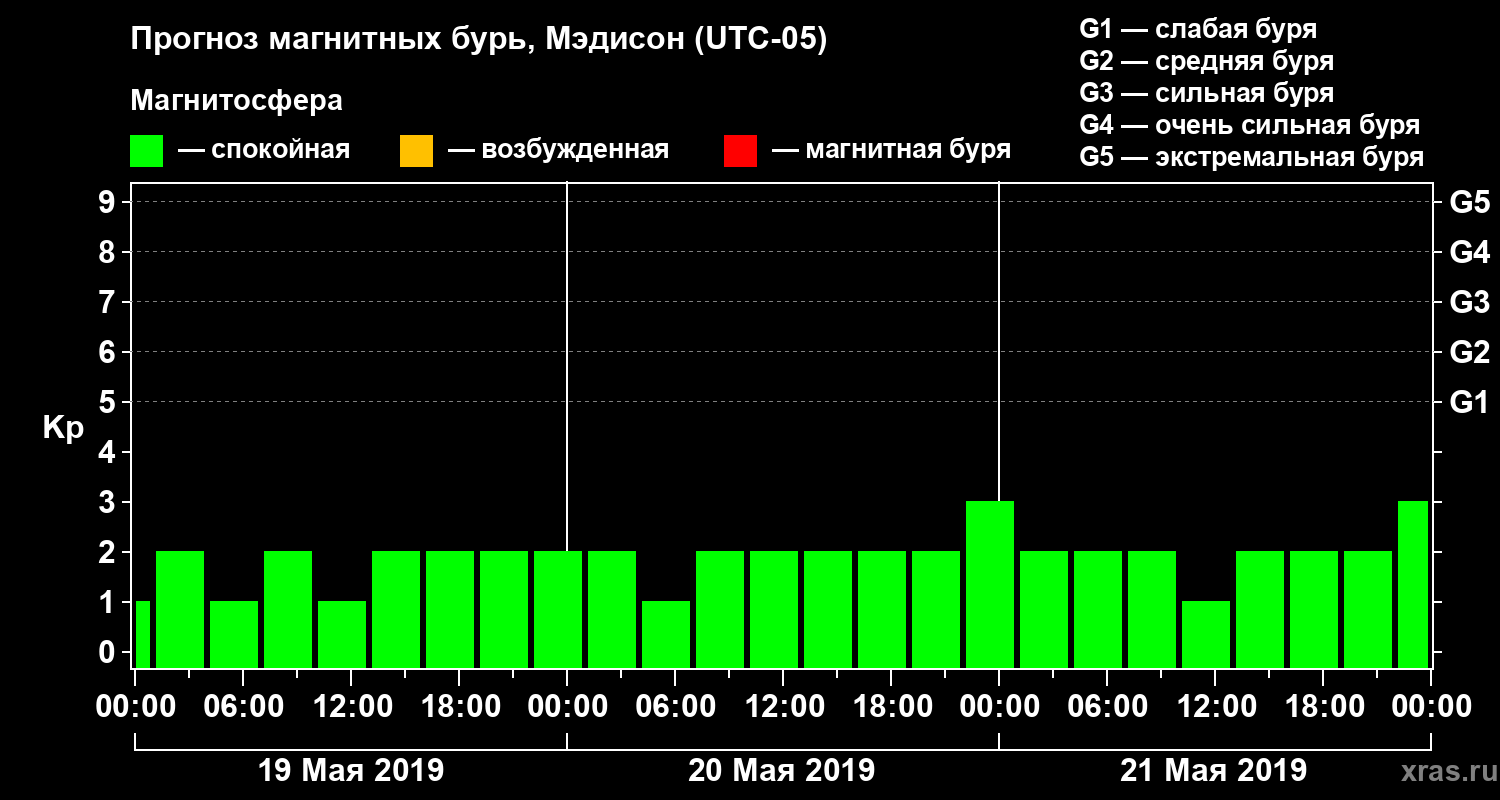 Прогноз магнитных бурь в Мэдисоне — 19 мая 2019 года