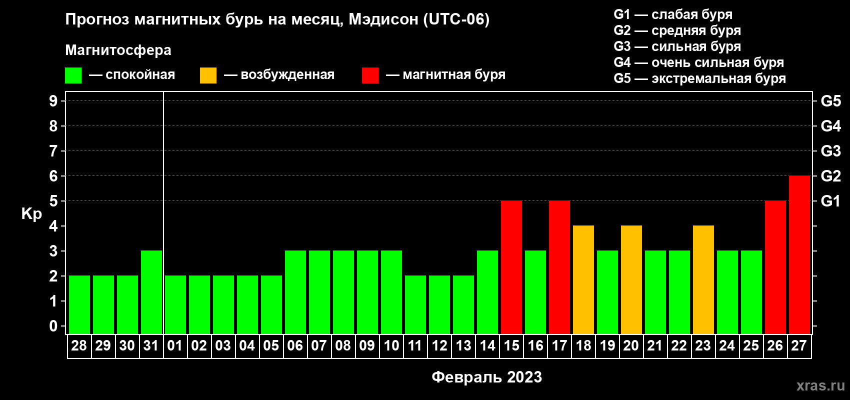 Прогноз магнитных бурь в Мэдисоне на 28 января 2023 года
