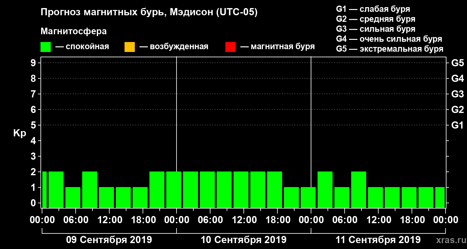 Прогноз магнитных бурь в Мэдисоне — 9 сентября 2019 года